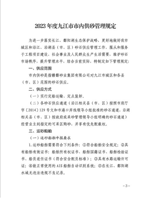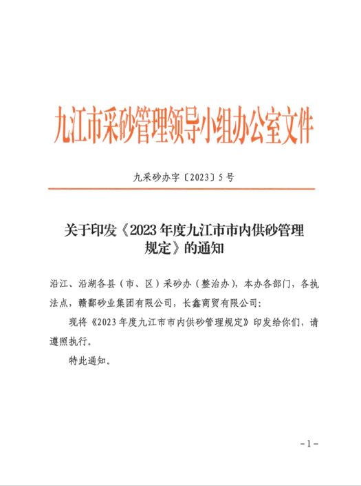 關(guān)于印發(fā)《2023年度九江市市內(nèi)供砂管理規(guī)定》的通知